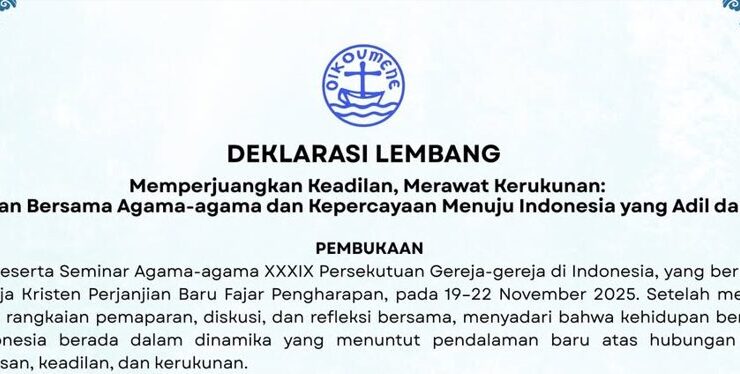 Konten ini diambil dari akun Instagram Bidang KKC PGI DEKLARASI LEMBANG Memperjuangkan Keadilan, Merawat Kerukunan: Perjalanan Bersama Agama-agama dan Kepercayaan Menuju Indonesia yang Adil dan Rukun Caption: Lebih dari 140 peserta lintas agama dan kepercayaan dari seluruh Indonesia menyatakan komitmen kolektif untuk memperjuangkan keadilan dan merawat kerukunan melalui Deklarasi Lembang, yang disepakati dalam rangkaian Seminar Agama-Agama XXXIX Persekutuan Gereja-Gereja di ...