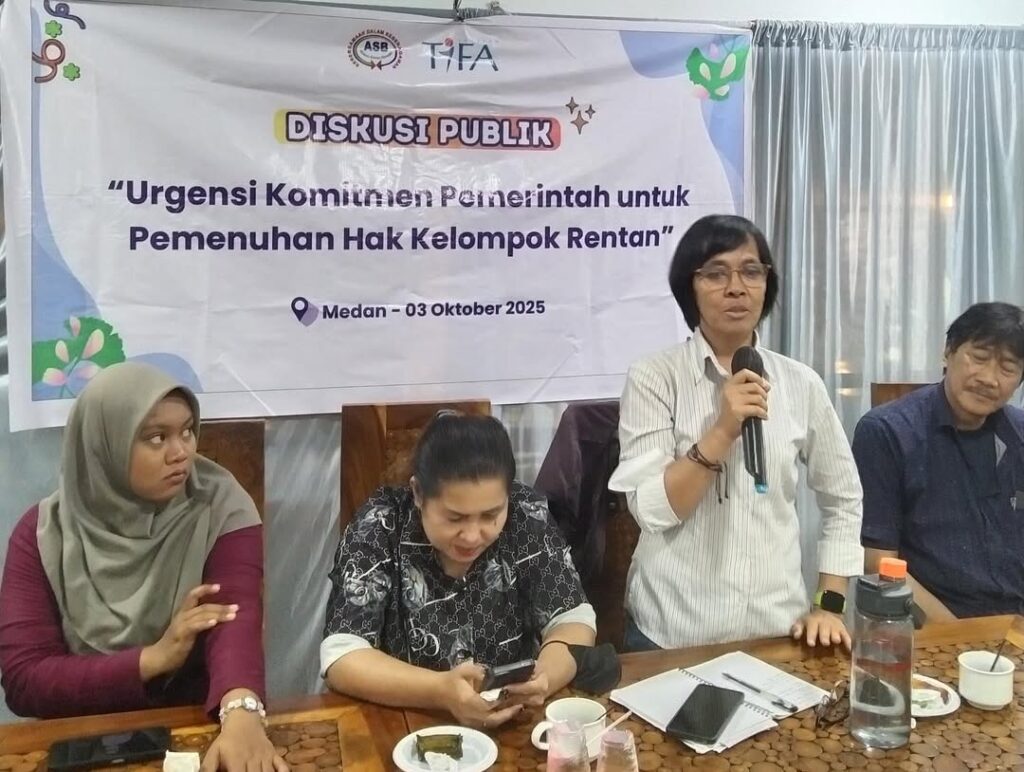 Pada tanggal 3 Oktober 2025, ASB memfasilitasi Diskusi Publik “Urgensi Komitmen Pemerintah untuk Pemenuhan Hak Kelompok Rentan.” Diskusi publik ini diharapkan menjadi wadah strategis untuk memperkuat sinergi antar pemangku kepentingan, membangun komitmen kolektif, serta merancang langkah-langkah nyata guna menjamin