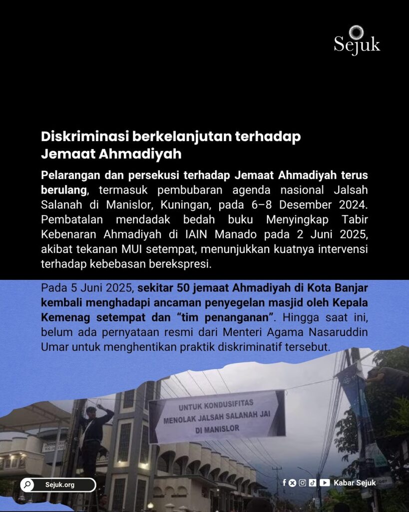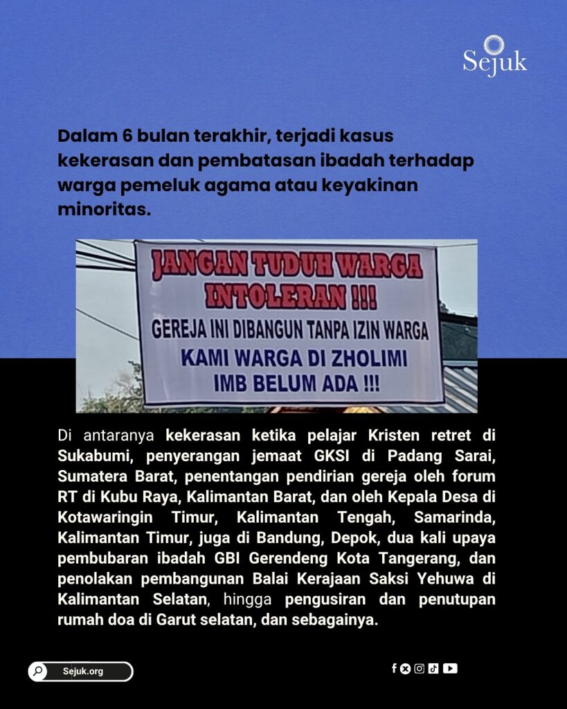 ● Dalam enam bulan terakhir, terjadi kasus kekerasan dan pembatasan ibadah minoritas.
