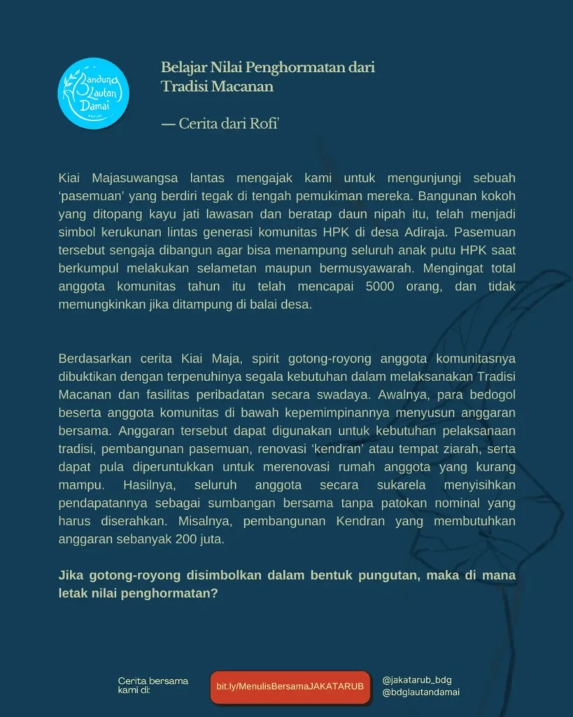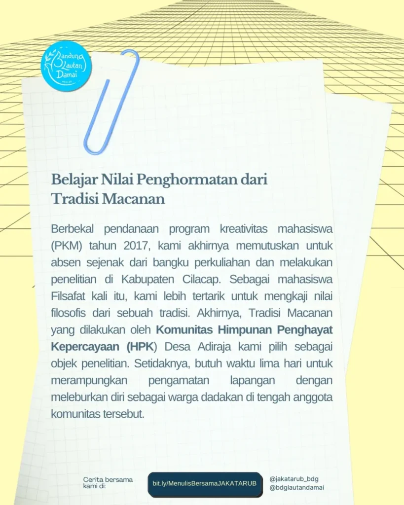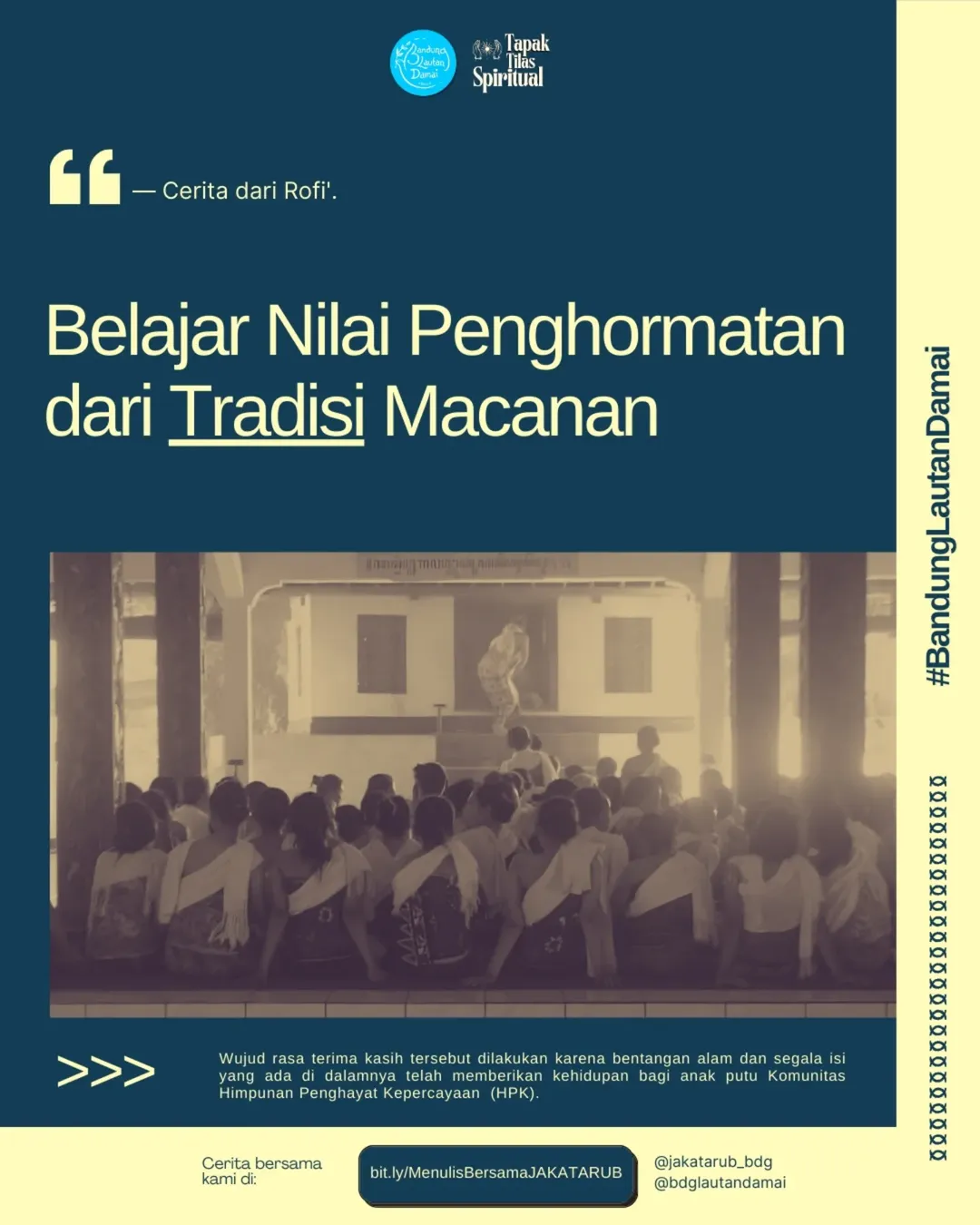 Ia bercerita soal tradisi macanan dan nilai-nilai spiritual yang terkandung di dalamnya
