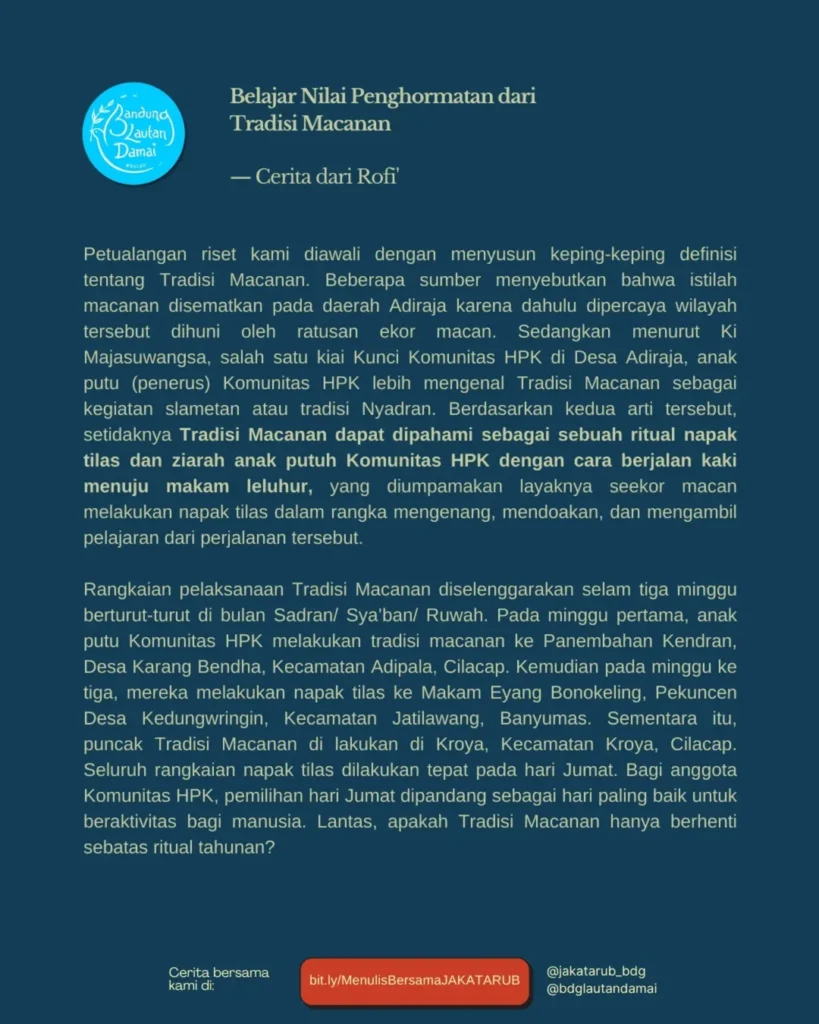 ● Tradisi Macanan adalah ritual napak tilas untuk membersihkan batin dan menghormati leluhur serta alam.