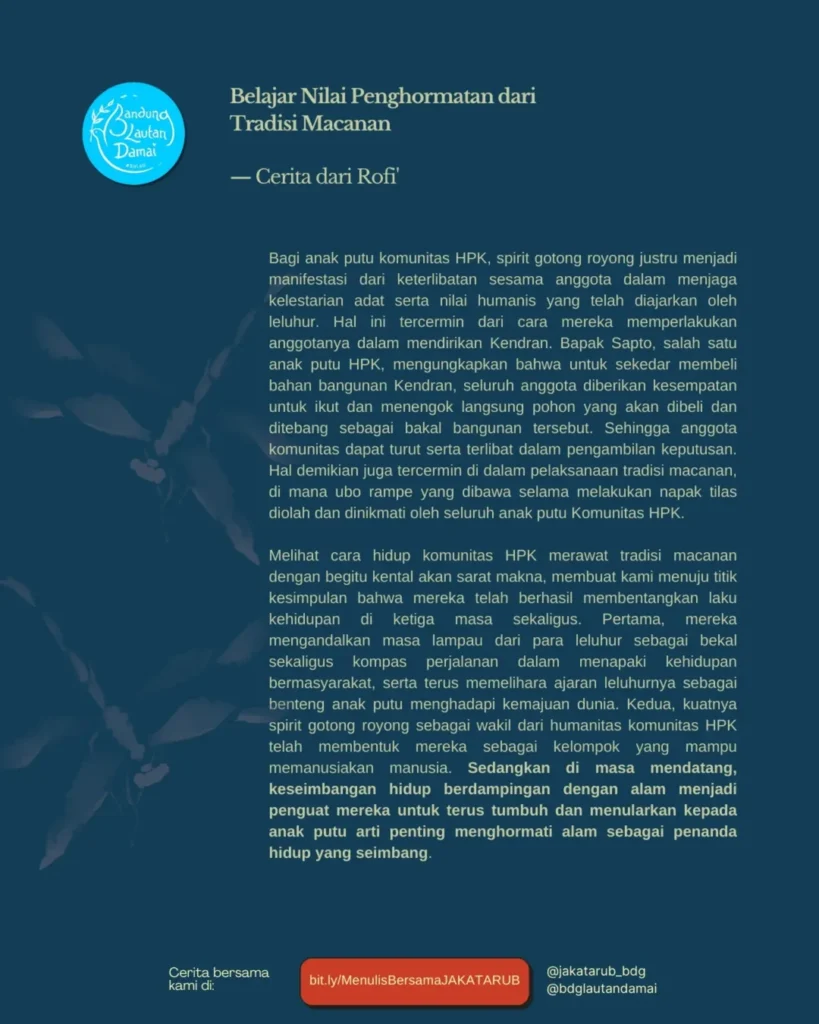 ● Tradisi ini melestarikan ajaran leluhur untuk hidup harmonis dengan alam dan sesama manusia.