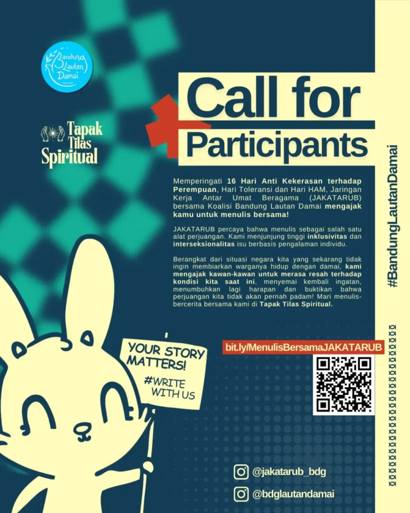 Jaringan Kerja Antar Umat Beragama (JAKATARUB) bersma Koalisi Bandung Lautan Damai sedang memperingati Hari Toleransi, 16 HAKTP dan Hari HAM di Bandung raya! Ikuti beragam inisiatifnya yang bisa dipantau di akun @bdglautandamai