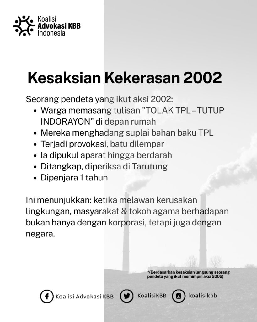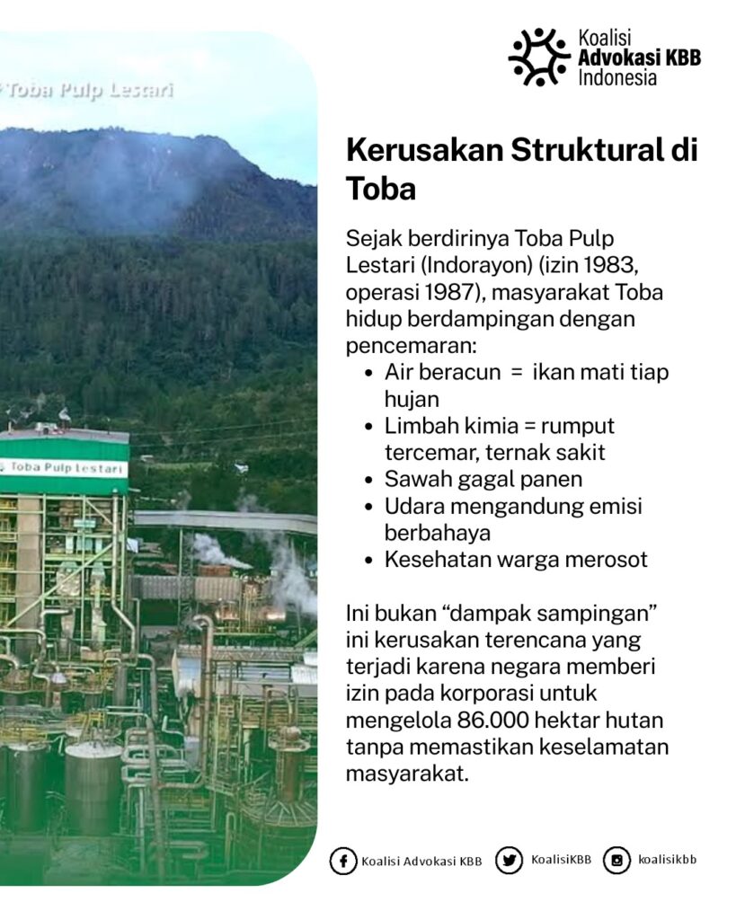 Di Toba, warga menghadapi udara kotor, air tercemar, dan tanah yang tak lagi subur. Tokoh agama, masyarakat adat dan masyarakat sekitar turun ke jalan, mempertaruhkan tubuh mereka demi lingkungan yang sehat. Hasilnya? Mereka dipukul, ditangkap, dan diperlakukan seperti kriminal.
