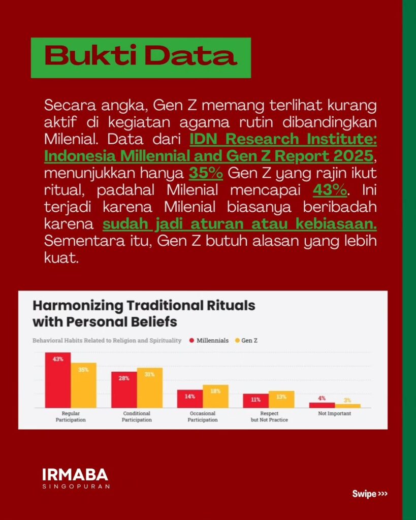 According to the IDN Research Institute, fewer Gen Z are participating in regular religious rituals (35% vs. 43% of Millennials). But they aren’t losing faith; they are simply demanding authenticity. They are moving away from institutional religion to a personal and critical spirituality🙏✨