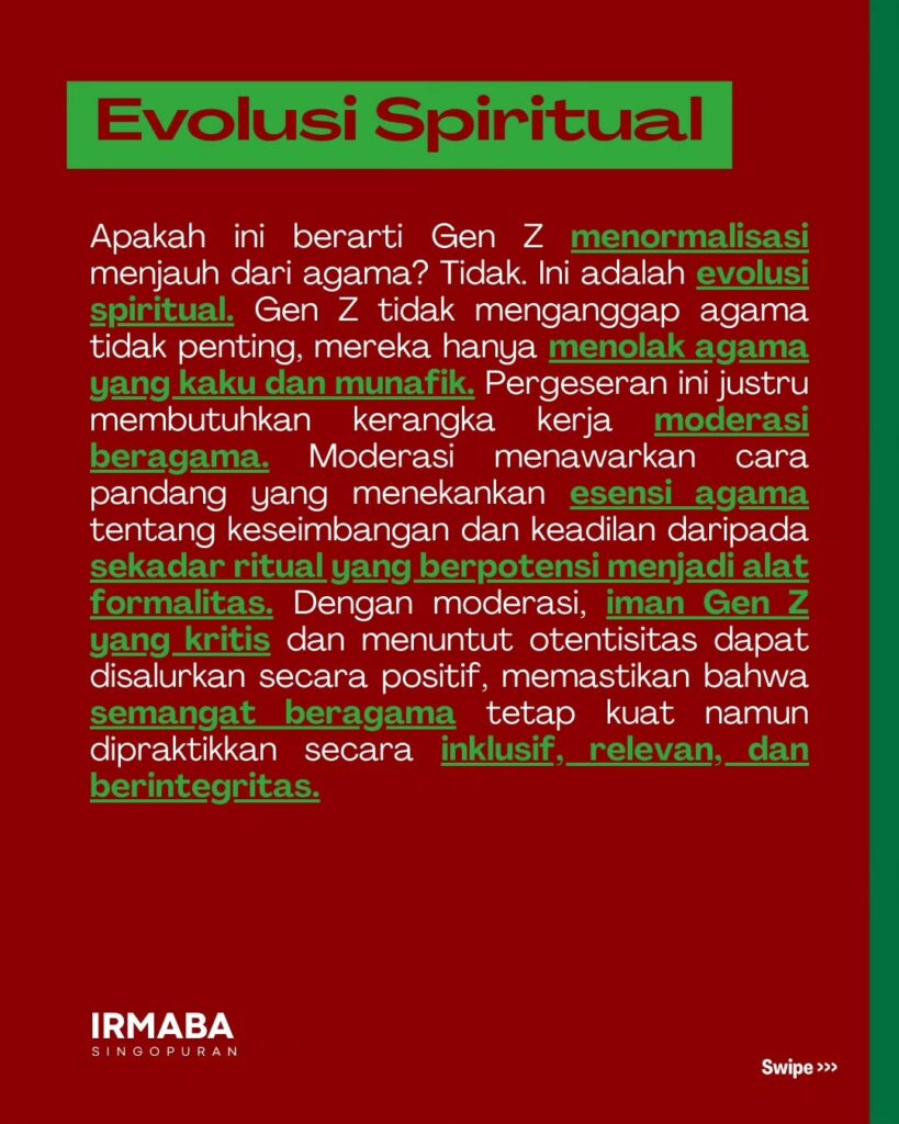 ● Perubahan ini bukan penolakan agama, melainkan evolusi spiritual yang memerlukan pendekatan moderat dan relevan.