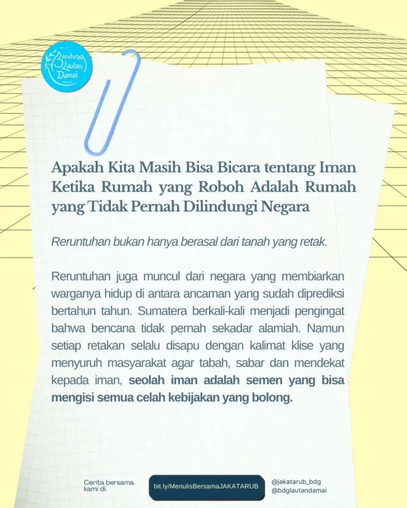 β Tanggung jawab struktural negara tidak dapat digantikan oleh iman atau kesabaran warga yang paling rentan terdampak.