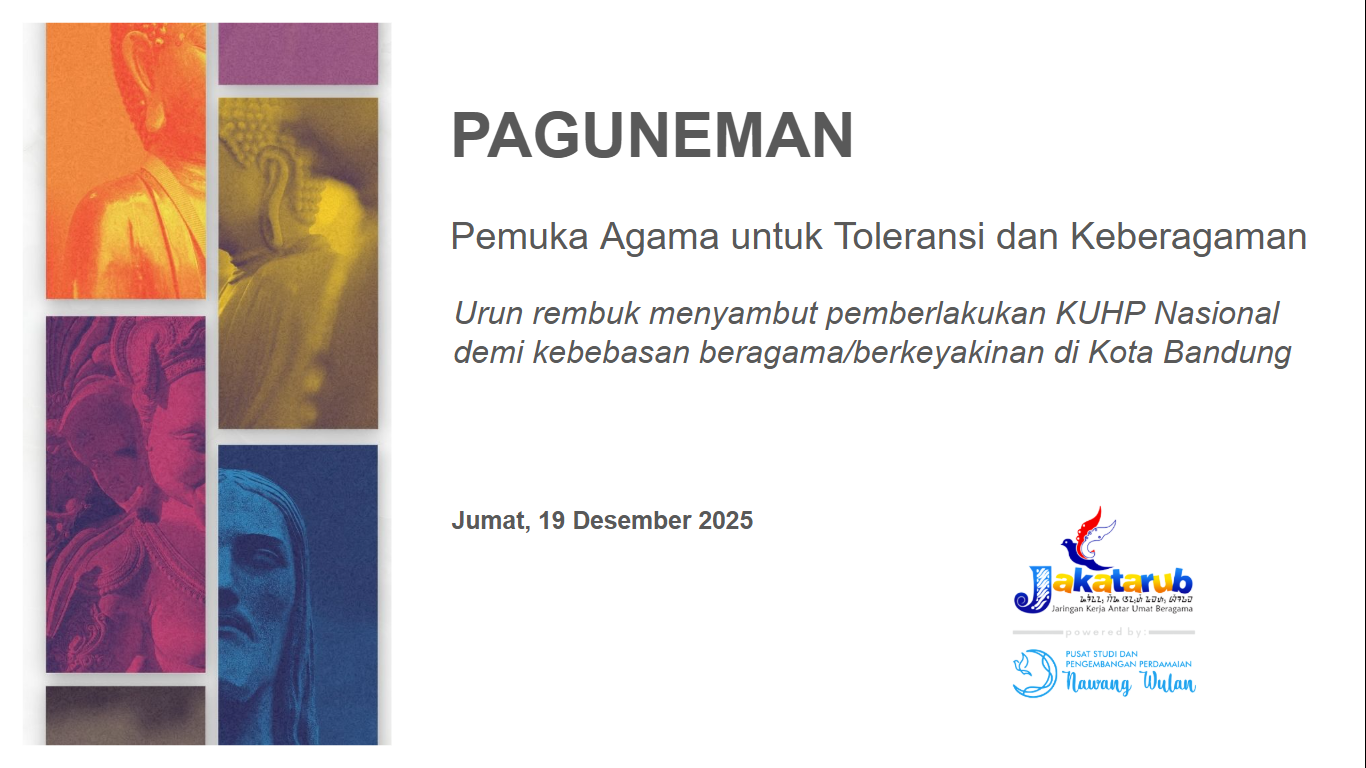 Kekhawatiran tersebut mengemuka dalam forum yang digelar di Bandung pada Jumat (19/12/2025). Jaringan Kerja Antarumat Beragama (JAKATARUB) bersama PSPP Nawang Wulan memfasilitasi pertemuan bertajuk “Pemuka Agama untuk Toleransi dan Keberagaman (PAGUNEMAN): Urun Rembuk Menyambut Pemberlakuan KUHP Nasional dan Dampaknya terhadap Kebebasan Beragama dan Berkeyakinan (KBB) serta Isu-Isu Kemanusiaan Lainnya.”