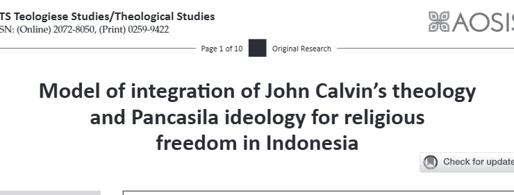 Republikasi dari AOSIS Judul Asli: Model of integration of John Calvin’s theology and Pancasila ideology for religious freedom in IndonesiaPenulis: Stevri P.N.I. Lumintang, Zummy A. Dami Abstrak:Artikel ini bertujuan membangun sebuah model integrasi antara teologi John Calvin dan ideologi Pancasila terkait kebebasan beragama serta implementasinya dalam upaya mewujudkan kebebasan beragama yang utuh. Tujuan ini muncul dari pengamatan bahwa kebebasan beragama ...