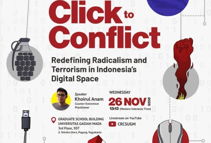 Konten ini diambil dari akun Instagram CRCS UGM Captions: Clicks are shaping conflicts. In Indonesia’s digital sphere, algorithms now fuel intolerance, speed up radical shifts, and collapse the distance between online anger and real-world violence. “From Clicks to Conflict” reframes radicalism and extremism through Indonesia’s own data, cases, and digital behavior. Understanding how hate evolves online isn’t optional anymore. It’s ...